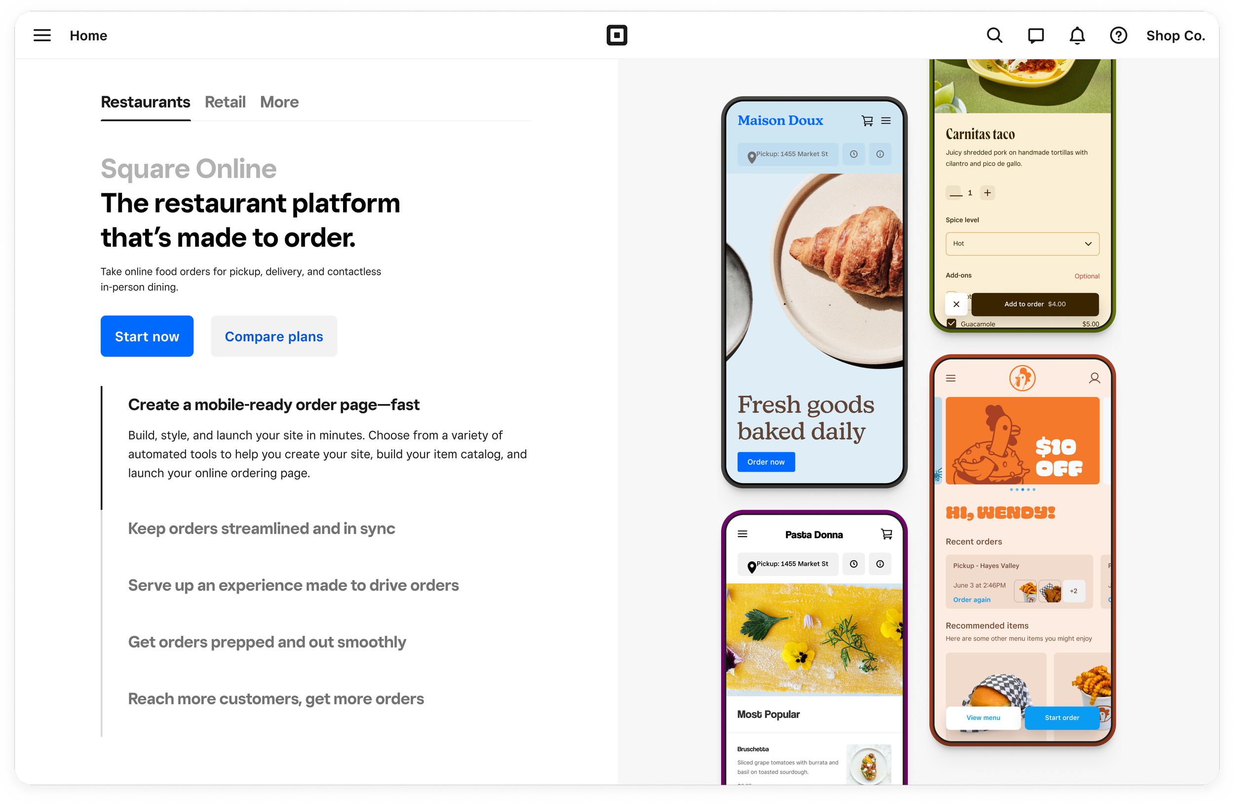 Square Online offered four core plans plus a lightly advertised Personal plan, which closely mirrored the Free tier. The plan structure was difficult to understand, and it wasn’t always clear what value sellers gained by upgrading — especially without a transparent path to downgrade later.